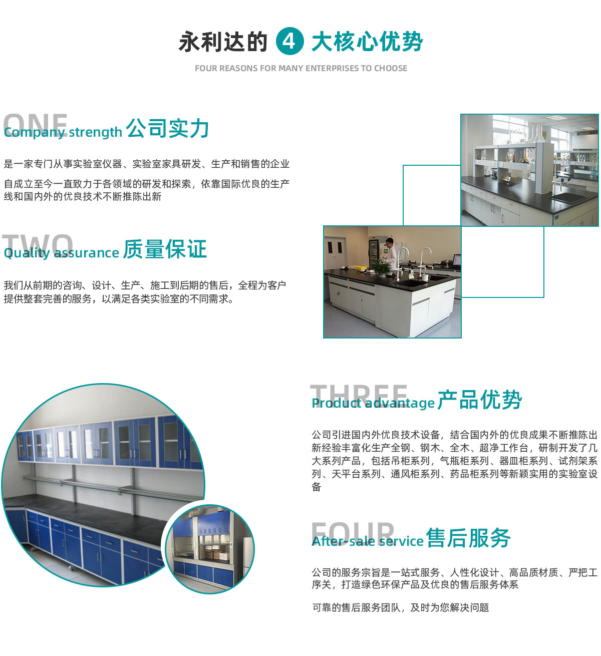 天津永利達實驗室設備有限公司是一家從事實驗室家具研發(fā)、生 產、銷售與服務于一體的企業(yè)。成立于2006年,坐落于天津市靜海高新產業(yè)園區(qū)。公司秉承“科技創(chuàng)新、質量為本、服務至上”的理念,致力于為用戶提供實驗室家具和整體解決方案。 公司的主要業(yè)務涵蓋了實驗室家具、實驗室通風、凈化、集中供氣、純水及裝修等多個領域,憑借多年在實驗室行業(yè)的積累,和不斷吸收國際上的技術與設計理念,我們從前期的咨詢、設計、生產、施工到后期的售后,全程為客戶提供整套完善的服務,以滿足各類實驗室的不同需求。 公司的服務宗旨是 提供人性化設計、材質、嚴把工序關,打造綠色環(huán)保產品及完善的售后服務體系。
